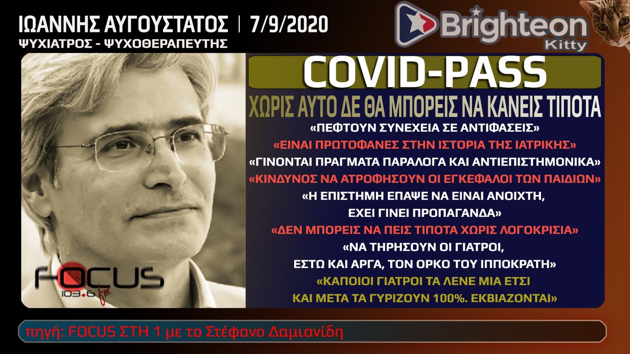 Ιωάννης Αυγουστάτος 7/9/2020 Ψυχίατρος - Ψυχοθεραπευτής στον Στέφανο Δαμιανίδη του Focus Fm 103,6. Covid-pass