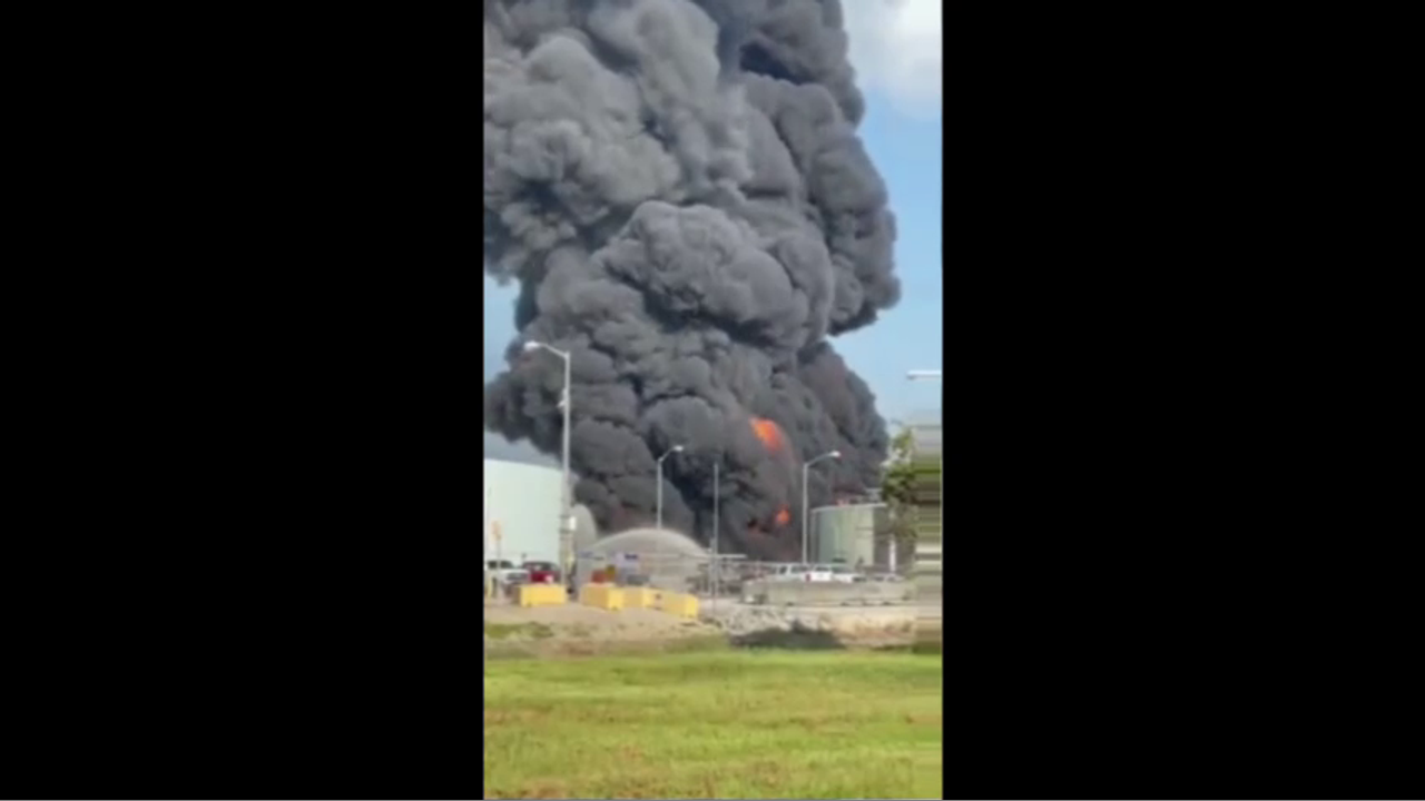 The major fire at the Marathon Petroleum refinery in Garyville, Louisiana. Residents have been evacuated within a radius of 1.5 km.