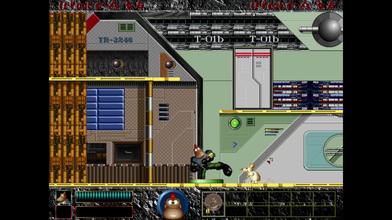Your character can jump, punch and kick. There are various items to pick up. Bombs can thrown to hurt enemies from a distance, ID cards while activate lifts, a red and blue pill will refill your health once automatically if you run out of health.