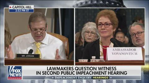 Ohio Congressman Jim Jordan draws laughter while questioning Marie Yovanovitch at open impeachment hearing on Capitol Hill. #FoxNews
