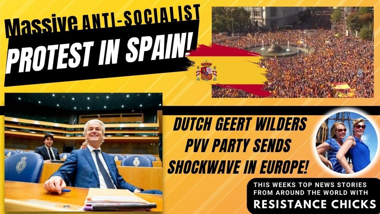 Weekly World News Report- What is going on in Spain? Massive protests as anti socialists take to the streets in record numbers decrying what they say is a tyrannical government. Tucker reports on location. Big News out of the Netherlands! We have been keeping an eye on Conservative politician Geert Wilders since 2017 and now his party is leading in the polls as the Dutch head to a snap election caused by the resignation of their former Prime Minister Mark Rutte in the wake of the highly successful farmer protests. Europe seems to be at a tipping point as clashes between the cultures heat up to level 10 over the conflict in the middle east. We will bring you the latest disturbing scenes and discuss possible solutions. All of that & more in this week's TOP World News Stories! Read More:https://www.resistancechicks.com/massive-anti-socialist-protest-in-spain/