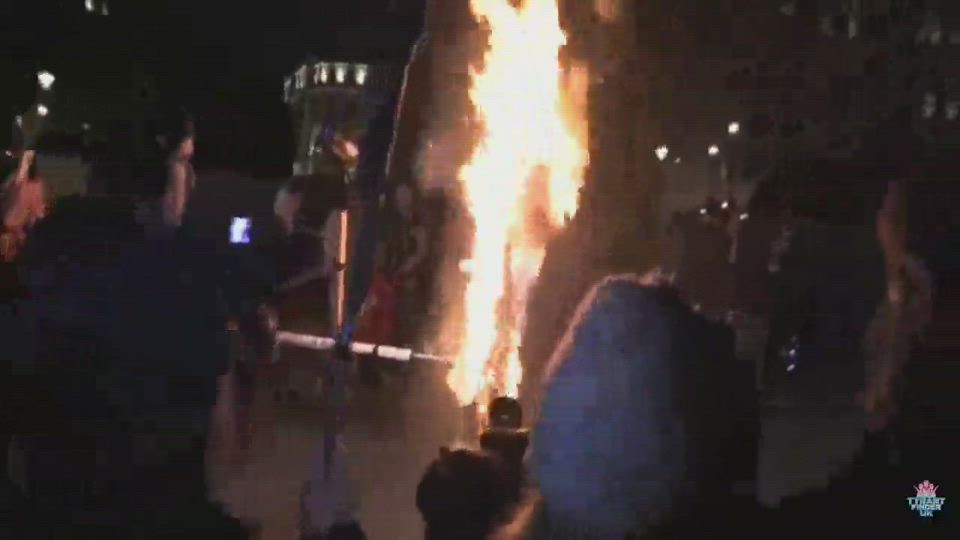 Effigy of Boris Johnson set alight in Trafalgar Square 🔥