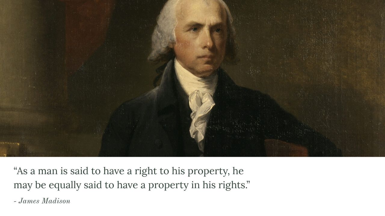 For many of the founders, property rights were the foundation of all the others. James Madison took things even further, arguing that people not only have a right to property, but also a property in their rights - tying property rights, self ownership and all natural rights together.