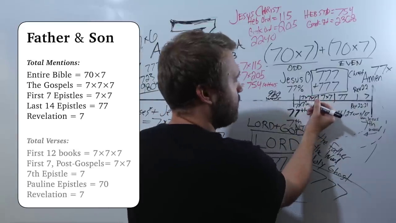 Did you know… Father + Son = 7 mentions in Revelation, 7×7×7 mentions in the Gospels, and 70×7 mentions in the entire Bible? (Excluding antimentions such as Father Abraham) (Detailed on pp. 88-94)