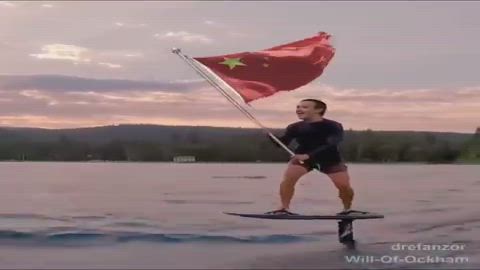 Mark ZuckerTurd Flies His National Flag While On His Hydrofoil