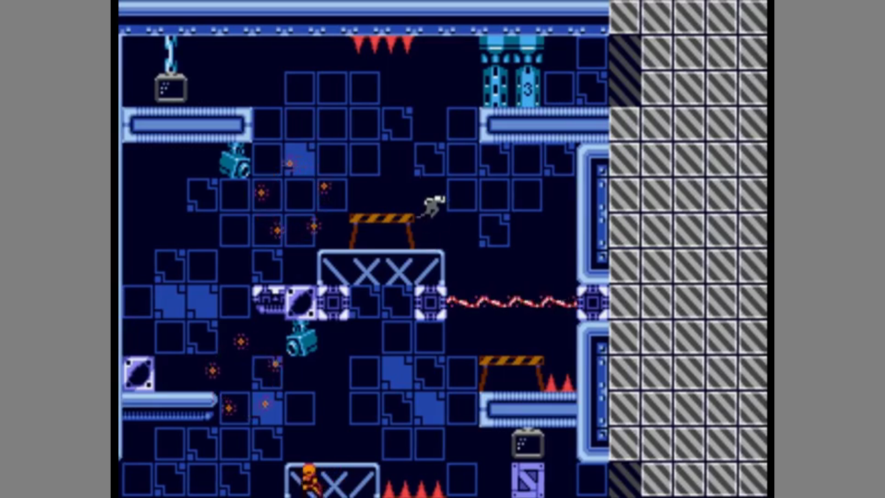 The game is similar to titles like Impossible mission of Zillion. You have got an inventory where you collect items like keycards and grenades. You can throw grenades to kill enemies. The game switches between different rooms. If you leave a room and return, the room will be reset. If you die, you respawn at the door from which you entered. The room will be reset and you will have all items you had when entering the room. Each room is filled with dangers like cameras, energy barriers, enemies, spikes etc. If you get shot or touch any danger, you get killed, but you have infinite lives. There are computer terminals which deactivate and/or activate barriers or make blcks appear, and you often need to find out the order of using them to get where you need to go next. There are also trampolins on which can bounce to reach places beyond your jumping height.