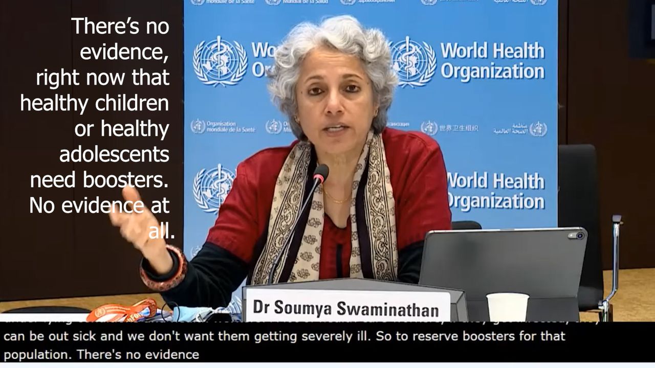 Dr. Soumya Swaminathan reveals that children and adolescents need boosters because there is no evidence.