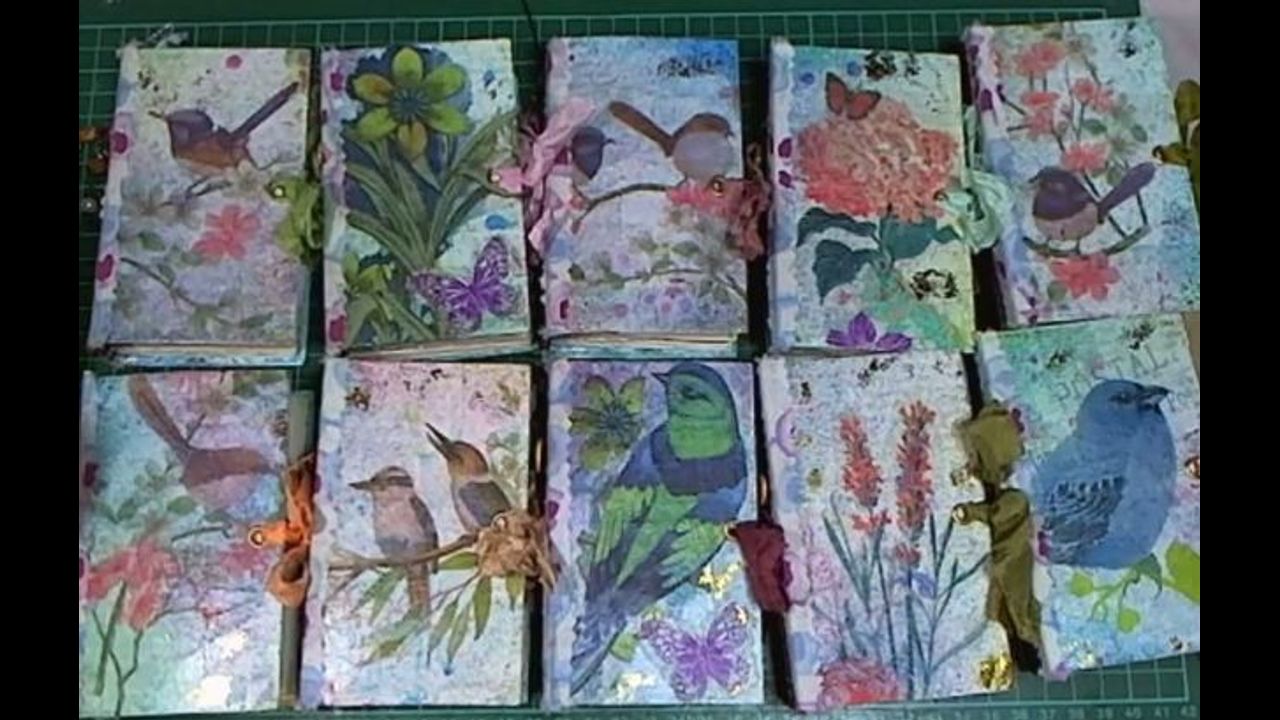 Hi everyone! .. In this video I show how I assemble and finish the 10 mini journals that I have been making. Hope you have all enjoyed the process .. Thanks for watching!