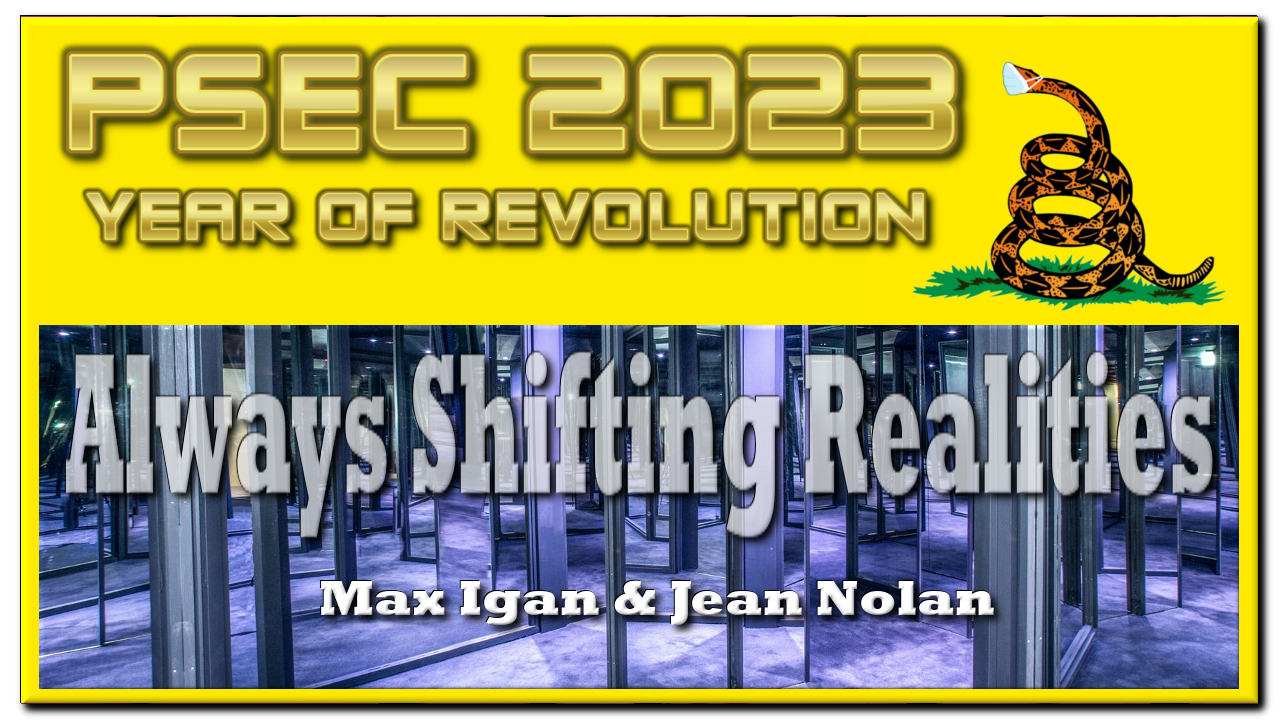 ABOUT: In this episode of "Paradigm Shift - An Educational Comedy" that we have titled as "PSEC - 2023 - Always Shifting Realities | Max Igan & Jean Nolan" -- an esoteric discussion about the times we are currently living in, followed by an on-topic comedic music video made by Dave Kelso in 2013.
