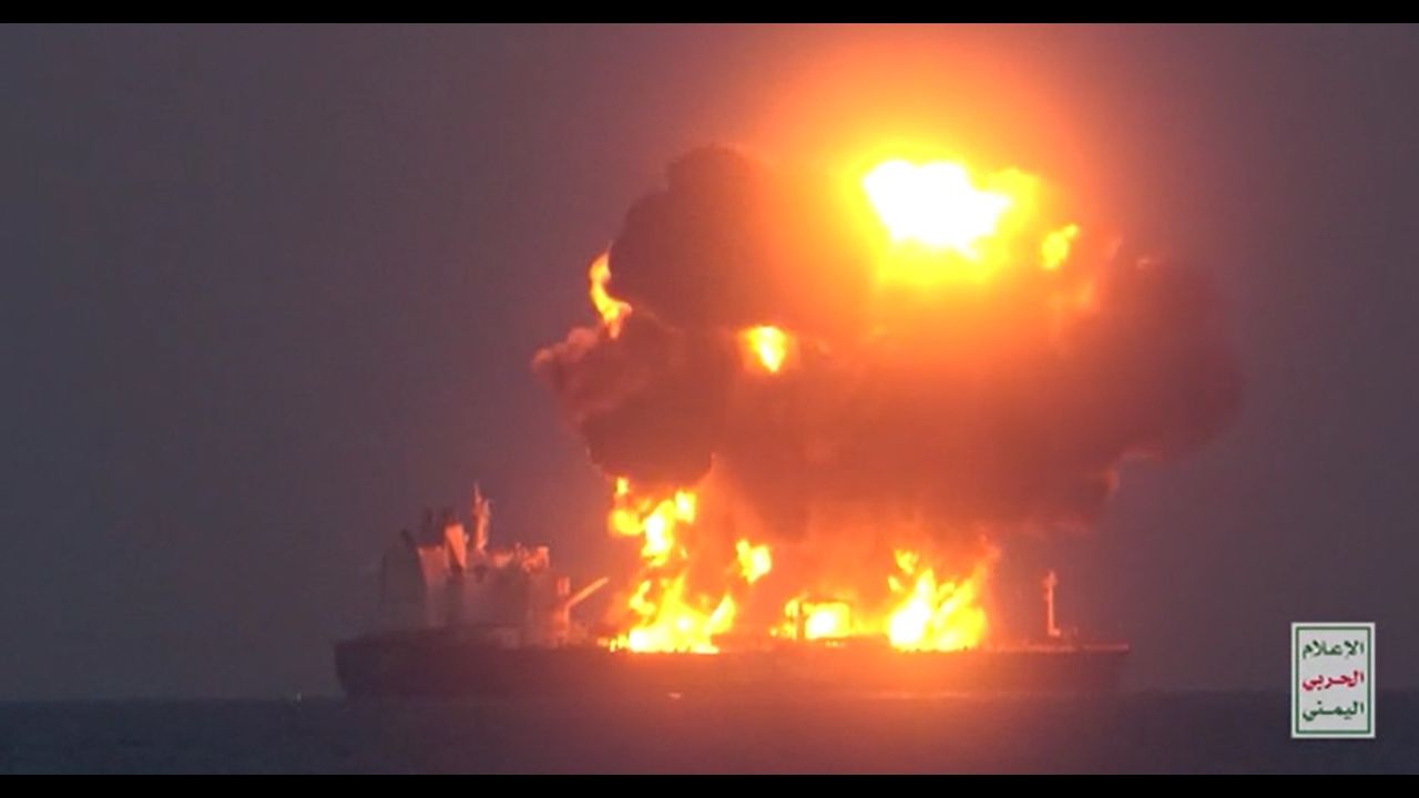 The 25 crew members of a Greek-owned and flagged oil tanker have been rescued by a European warship in the Red Sea after multiple attacks on Wednesday.