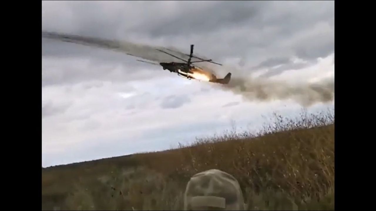 The work of Russian Ka-52 VKS Helicopters on Ukrainian Positions