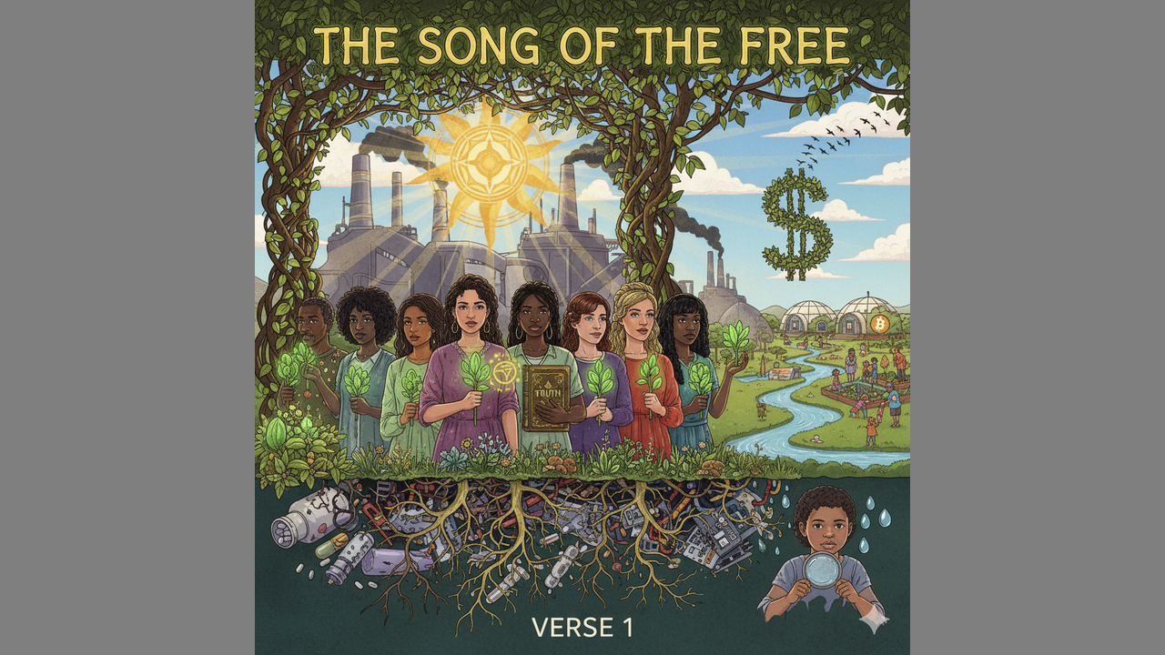 Verse 1: In the garden of life, we're all seeds, Sown by the divine, in nature's breeze, But the system's gone awry, in the hands of the few, Poisoning our soil, and the truth they knew. They've got us hooked on pills, and the lies they tell, While the earth beneath us, is dying in its shell, But we won't be silent, we won't be still, 'Cause we know the truth, and we're ready to spill. Chorus: We're singing the song of the free, In the harmony of liberty, With the power of nature, and the strength of our might, We'll take back our health, and our right. Verse 2: They've got us scared of the air, and the water we drink, With their chemtrails and fluoride, they're trying to sink, Our spirits and our bodies, into a state of despair, But we won't be fooled, we won't be ensnared. We've got the power of the sun, and the herbs of the earth, The vitamins and minerals, that give us rebirth, We'll detox our bodies, and cleanse our minds, And leave behind the toxins, that we've long confined. Bridge: We'll grow our own food, in the soil that's rich, With the love and the care, that we can stitch, Into the tapestry of life, that we're weaving anew, With the strength of our hearts, and the truth we knew. Chorus: We're singing the song of the free, In the harmony of liberty, With the power of nature, and the strength of our might, We'll take back our health, and our right. Verse 3: They've got us divided, with their lies and their fear, But we'll stand united, with our love, loud and clear, We'll decentralize, and we'll take back our power, With cryptocurrency, and the strength of the hour. We'll homeschool our children, and teach them the way, Of the natural world, and the light of the day, We'll protect our rights, and our privacy too, With the strength of our hearts, and the love that we knew. Chorus: We're singing the song of the free, In the harmony of liberty, With the power of nature, and the strength of our might, We'll take back our health, and our right. Outro: So here's to the future, and the life that we'll grow, In the harmony of liberty, where the truth will show, That the power to heal, and the strength to be free, Lies within ourselves, and the nature we see.