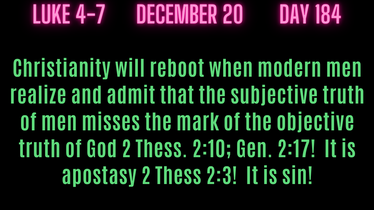 Luke 4-7 Christianity will not reboot until man realizes that the subjective truth of men is sin.