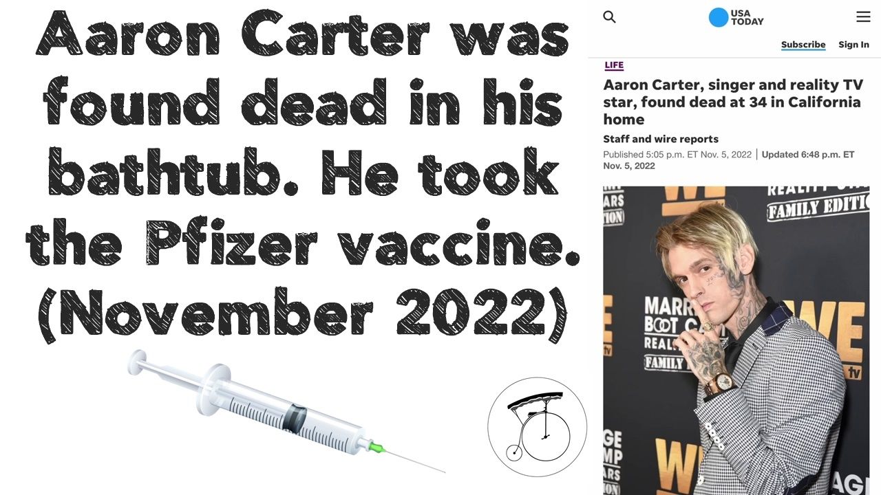 Aaron Carter was found dead in his bathtub. He took the Pfizer vaccine. ððŠĶð (November 2022)