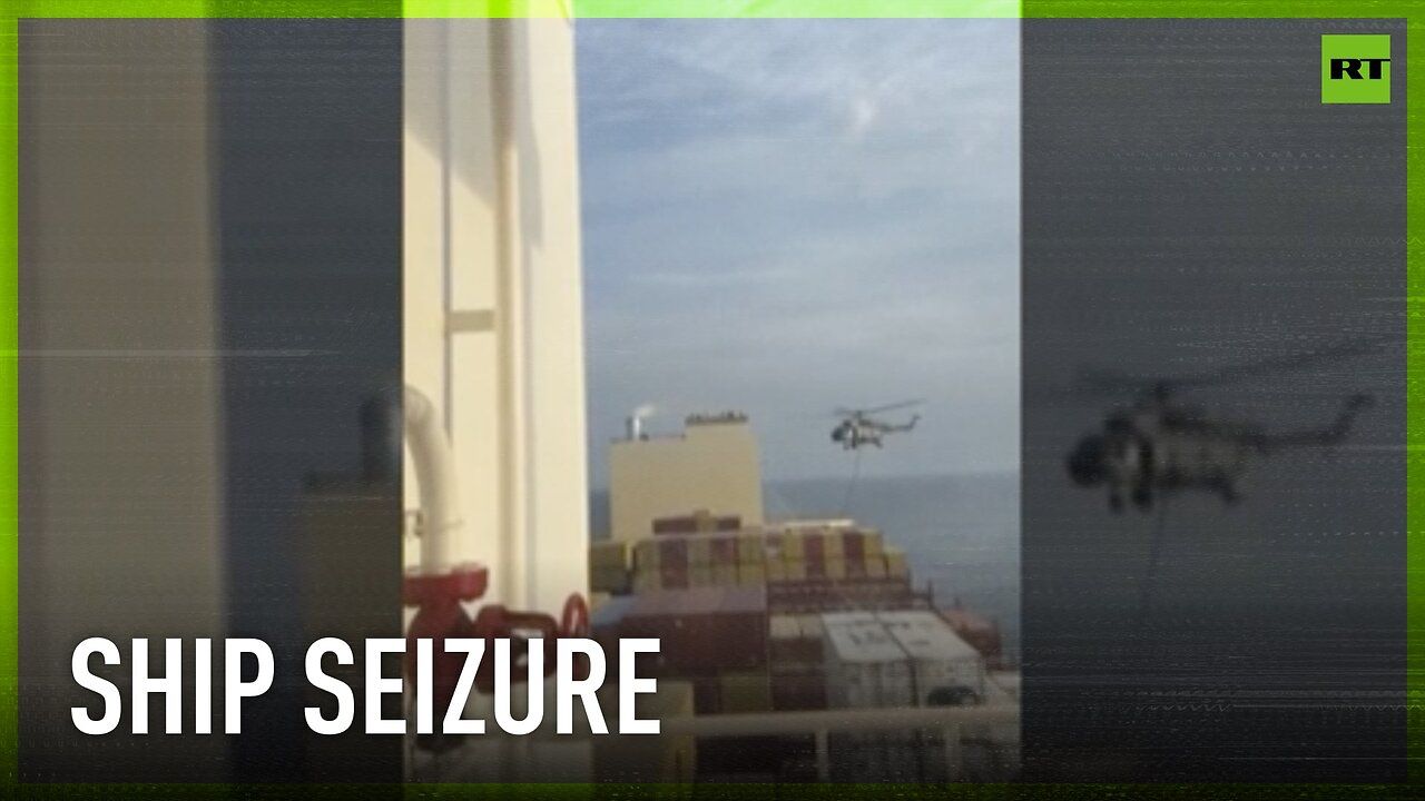 Footage shows Iran seizing the container ship MSC Aries near the Strait of Hormuz. According to Tehran, the vessel was owned by a company belonging to Israeli billionaire Eyal Ofer.