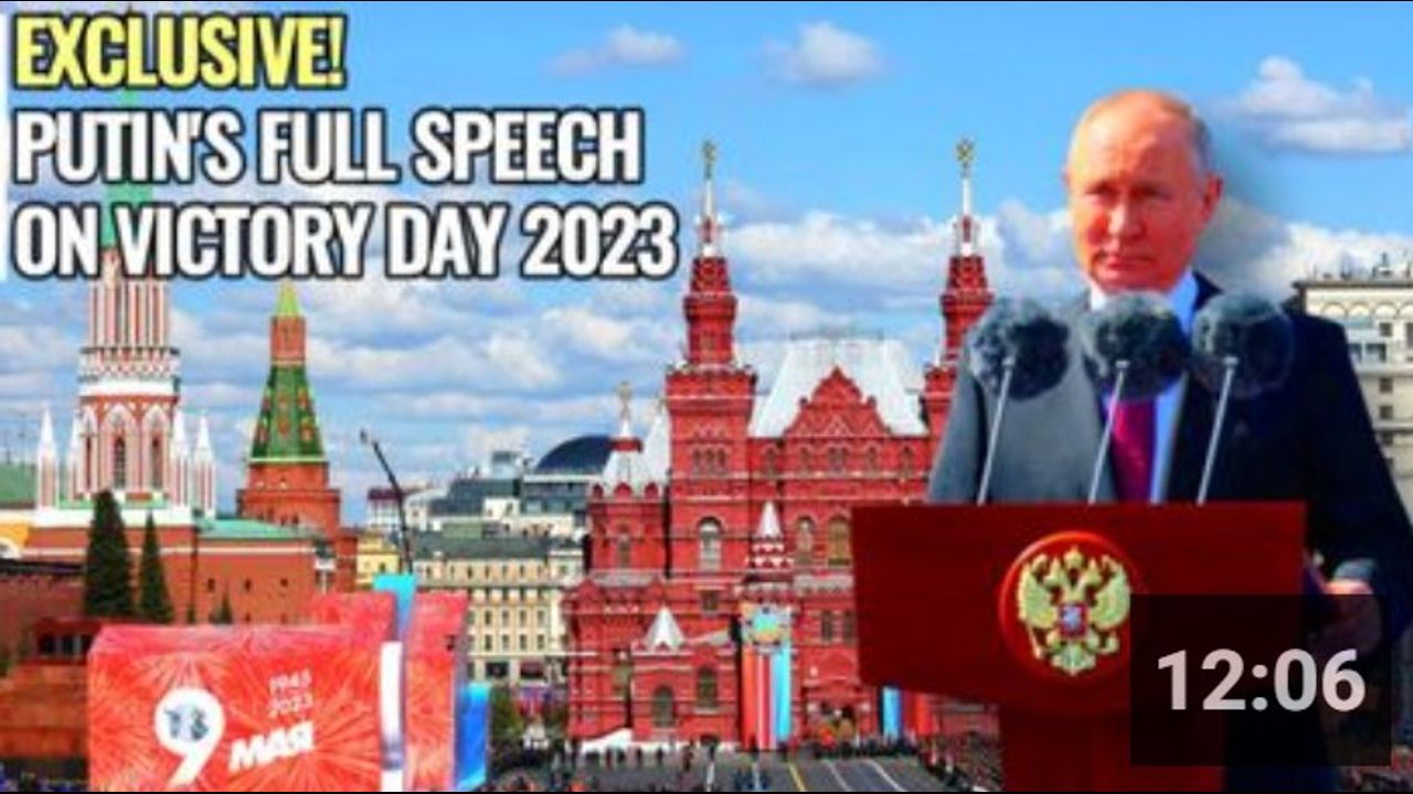 Russian President, Vladimir Putin gives the full speech at the Victory Day Parade 2023 on Red Square in Moscow. May 9th is Victory Day, when the Soviet Union defeated Nazi Germany in WW2, which Russia calls this war as The Great Patriotic War.