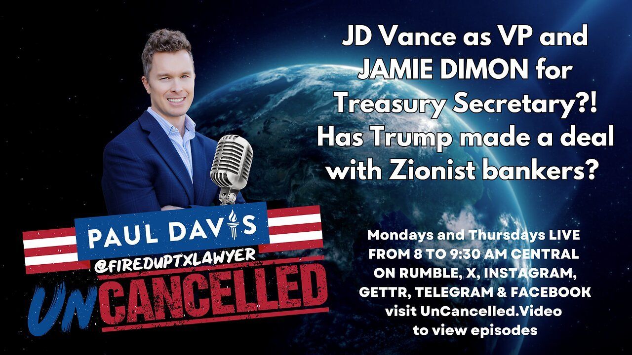 JD Vance as VP and JAMIE DIMON for Treasury Secretary?! Has Trump made a deal with Zionist bankers?