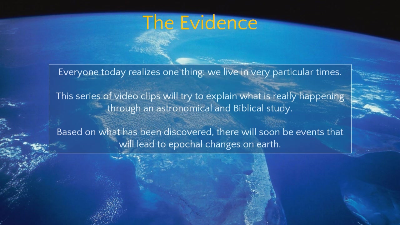 The video clip series “the Evidence” explains what is really happening in these particular times, and what future events will be.