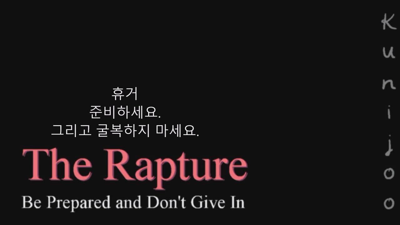 유튜브 아이디 'Kunijoo' 님이 수개월에 걸쳐 만든 애니메이션 비디오라고 합니다. 휴거 때와 대환란 때 이렇게 되지 않을까하고 상상해서 만들었다고 합니다. 보고 감동받았다는 분들이 많고 한글로 보고 싶어하시는 분들을 위해 한글을 입혀서 올립니다. 아주 잘 만든 애니메이션인데, 대환란에 대한 환상과 예언을 받은 사람들의 이야기를 들어보면 핍박은 여기에 나오는 것처럼 인간적이지 않고 훨씬 더 끔찍하고 비참함이 상상을 초월합니다. 모쪼록 다들 속히 오실 주님을 맞이할 준비를 하시기 바랍니다. 비결은 철저한 회개로 예수님의 보혈의 죄사함의 능력을 받아들이는 것입니다. 성령을 구하시고 예수님께 간절히 부르짖으세요. 누구든지 전심으로 예수님께 나아오는 자는 외면하지 않으신다고 하셨으니까요.