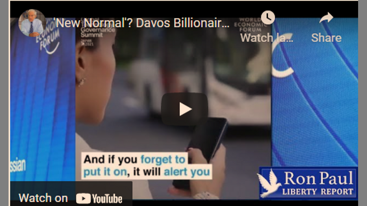 Just as many US states are seeing Covid numbers plummet, Klaus "trans-humanist" Schwab's World Economic Forum is pushing a new "smart mask" that not only tells you when to take a breath of fresh air: it also warns you to put it on if you've forgotten it. All tracked through your mobile phone. It is one more step toward China's Orwellian "social credit" system (in fact, the mask itself was developed by a Chinese firm!). And the billionaire elites want to shove it down our throats.