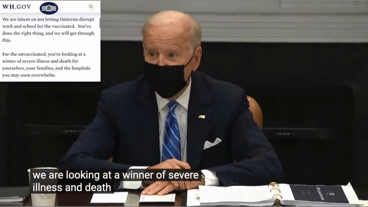 The White House’s Message of Severe Illness And Death For The COVID UNVaccinated - Seasons Greetings