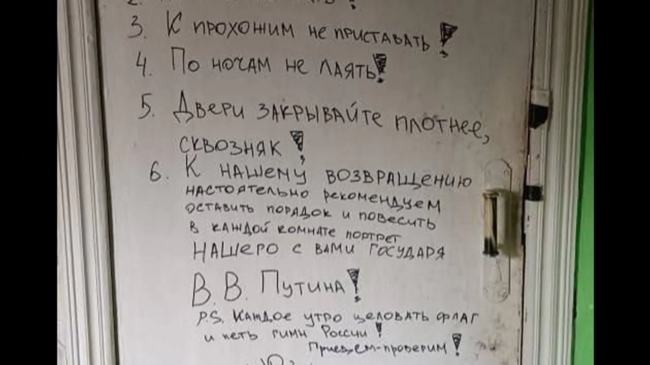 6. We strongly recommend that by the time we come back the place is clean and you've hung portraits of our Tsar V.V. Putin in every room.