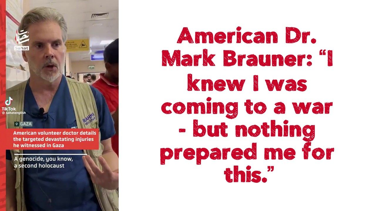 Dr. Mark Brauner, an American emergency physician volunteering in Gaza with RAHMA Worldwide, describes the horrific injuries, mass starvation, and genocide he’s witnessed. From people shot while waiting for food to patients piled on top of each other in overwhelmed hospitals.
