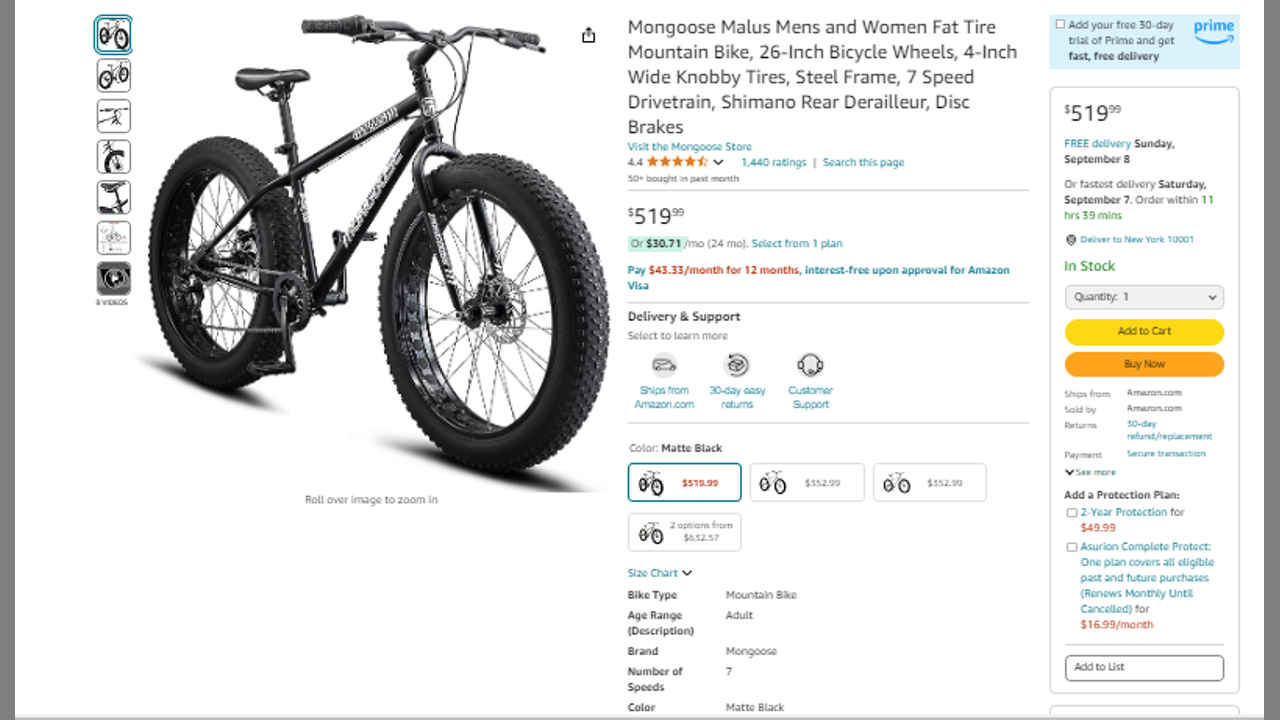 Mongoose Malus Mens and Women Fat Tire Mountain Bike