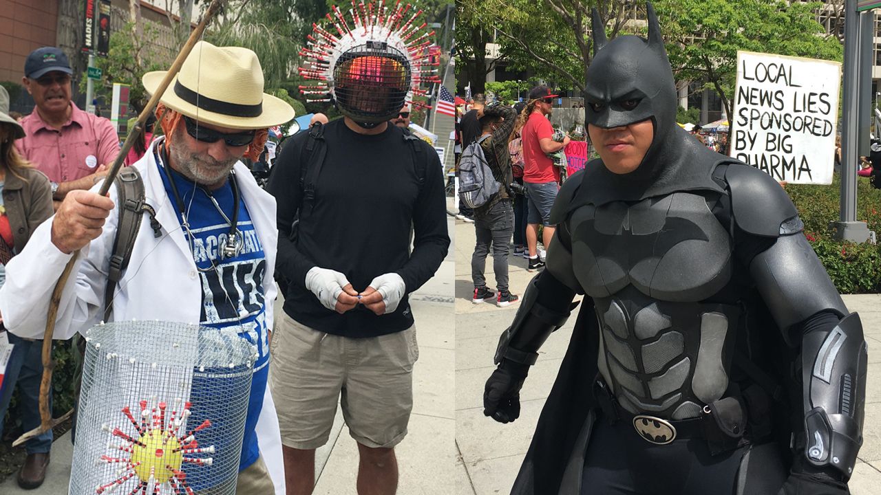 A batman and c19 virus isolating scientists are spotted by Jeff 4 Justice at a medical freedom rally in Los Angeles, CA. ▼ Click "More" for additional information