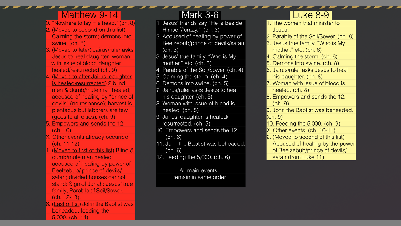 051. Jesus or Yeshua? Rubric Pt 3. Detailed Organization. Matthew 5-13, Mark 1-5, Luke 5-8
