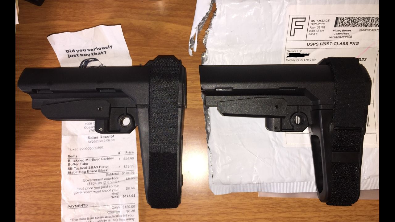 How to tell the difference between a genuine SB Tactical SBA3 pistol stabilizer and cheap counterfeit Chinese knock-offs. Some scumbags are selling fake $20 Chi-Com knock-offs on GunBroker, Auction Arms, Guns America, and other marketplaces. Some tips on how to spot a fake and how to avoid a scam artist seller.