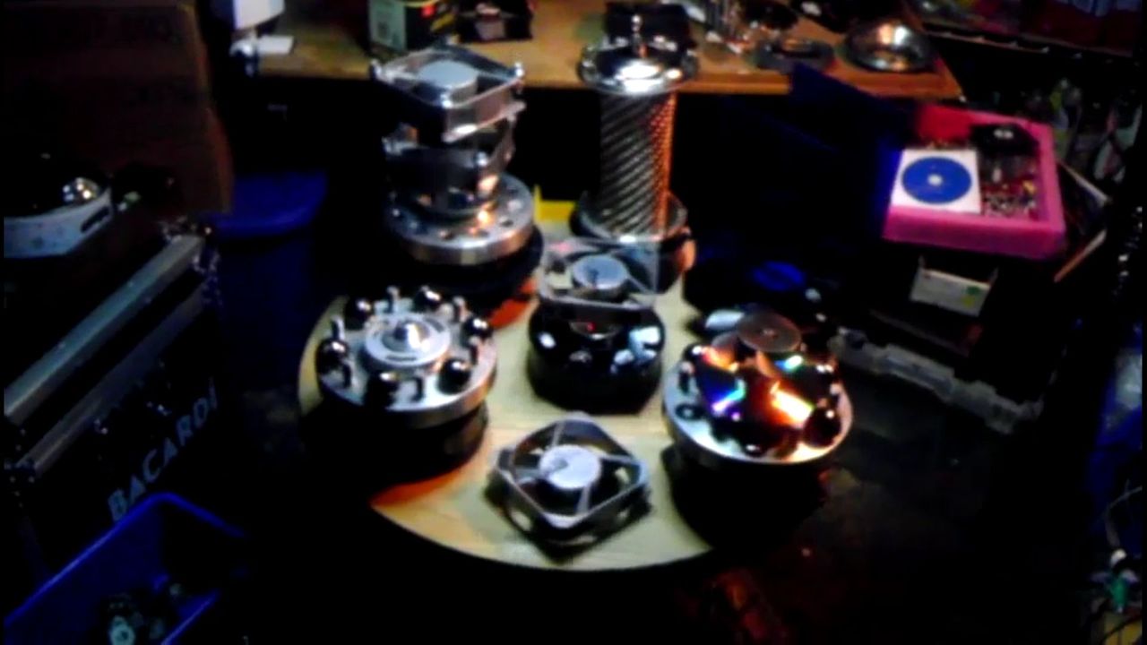 Spinning crafts made from junk in my shop.