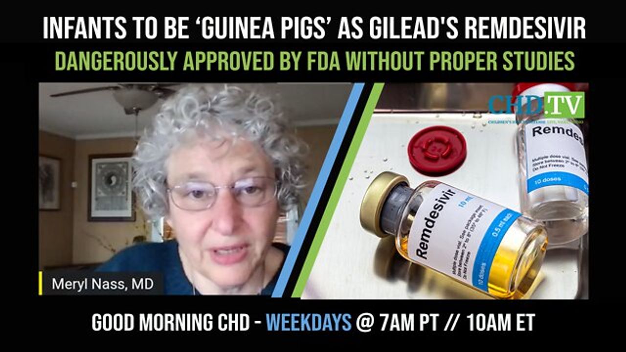 Dr. Meryl Nass: "Over 70% had an adverse reaction, 21% had a serious adverse event, and three of the children died. Because there was no control group, it's unclear how either Gilead or the FDA determined that the drug benefited children, because there's nothing to compare it to."