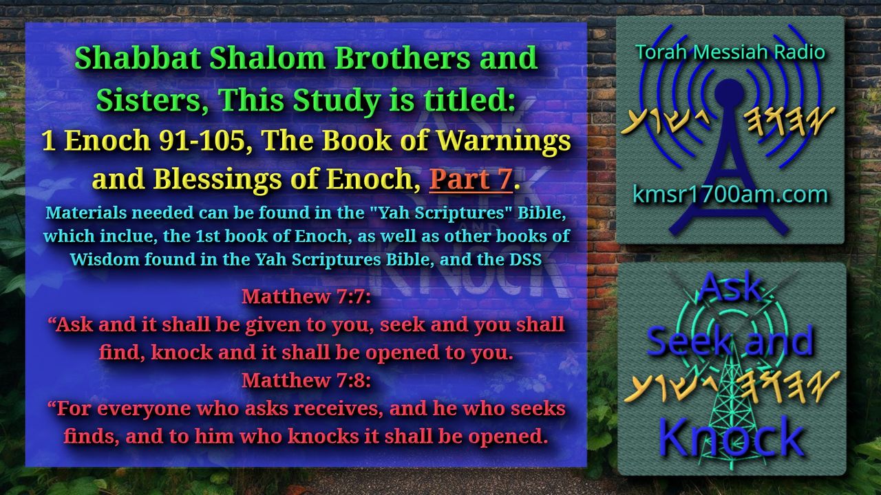 Thank you for joining us with this study. You may want to get your highlighters and notebooks. Remember to Please Test Everything! If you would like to fellowship with us, you can at 4pm Eastern Time Every Shabbat. Go to or https://www.kmsr1700am.com/ then click on the Jitsi button.
