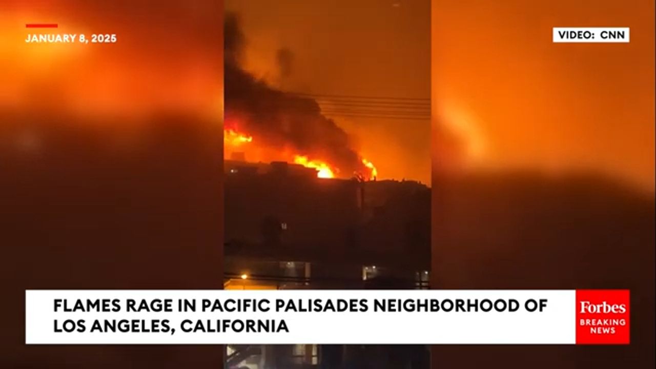Towering Flames And Smoke Billow Over Pacific Palisades As Tens Of Thousands Evacuate