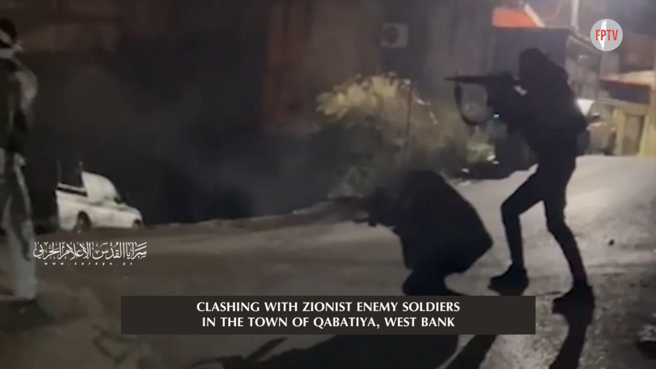Al-Quds Brigades (PIJ) striking Zionist jeeps with explosive devices,and Qabatiya groups of Jenin Brigade waging fierce clashes against Zionists in the West Bank, occupied Palestine