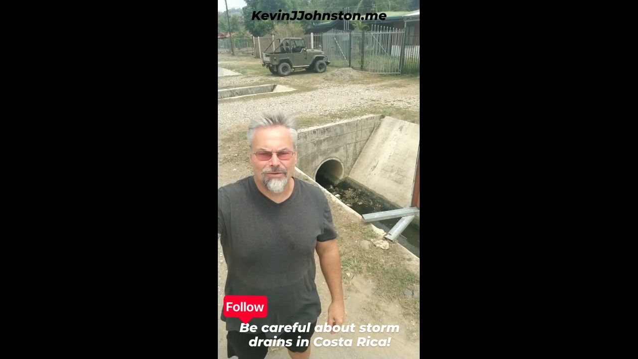 We are driving through a small town in Costa Rica when I saw storm drains that had absolutely no way to be seen unless you're right on top of them. I saw a car almost crashed inside of one of these so I thought I would get out and make a video and warn you that storm drains that are completely exposed like this are in enough places that you should pay attention to where you are at all times.