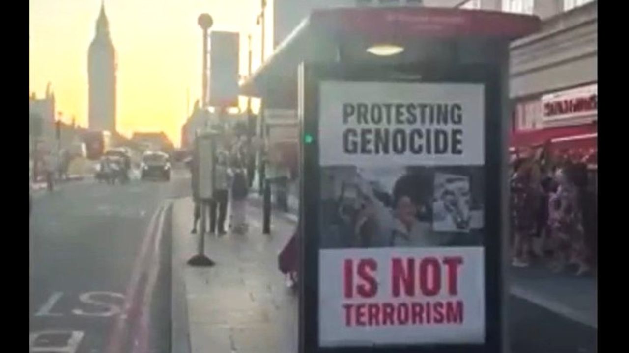 Activists in London ‘HIJACK’ bus station ads to protest ‘genocide’.