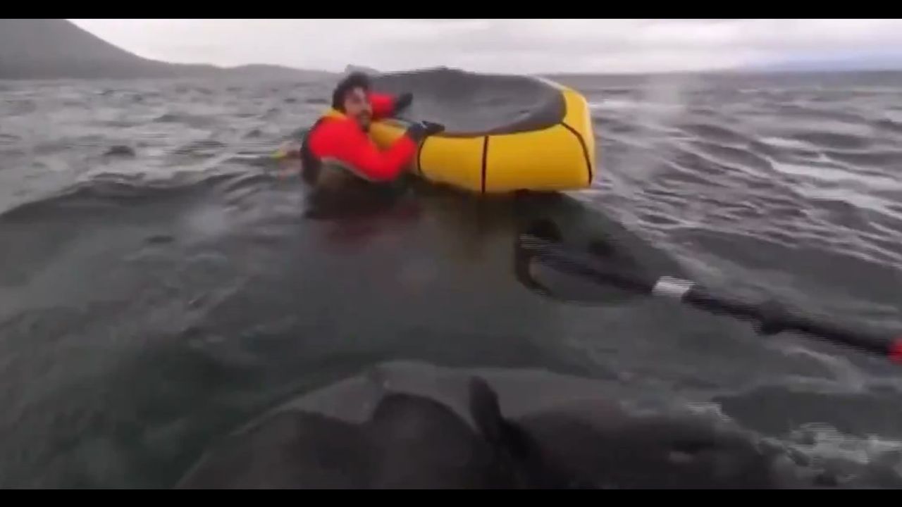 Stunning video footage shows a kayaker being swallowed and spat out by whale off the Chilean Patagonia. Adrian Ghobrial reports. Video from yesterday, 13th Feb.