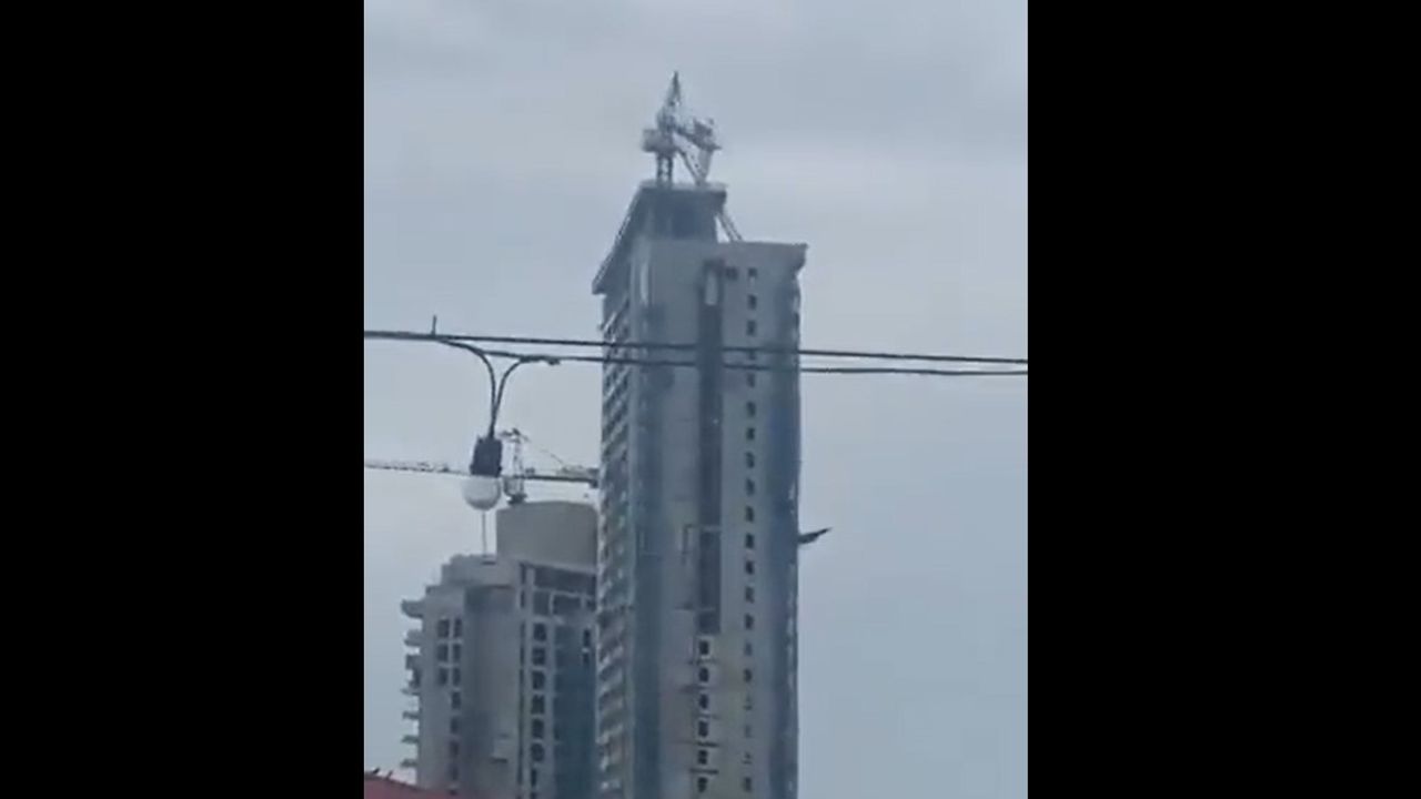 Crane falls from high-rise as earthquake rocks Philippines.