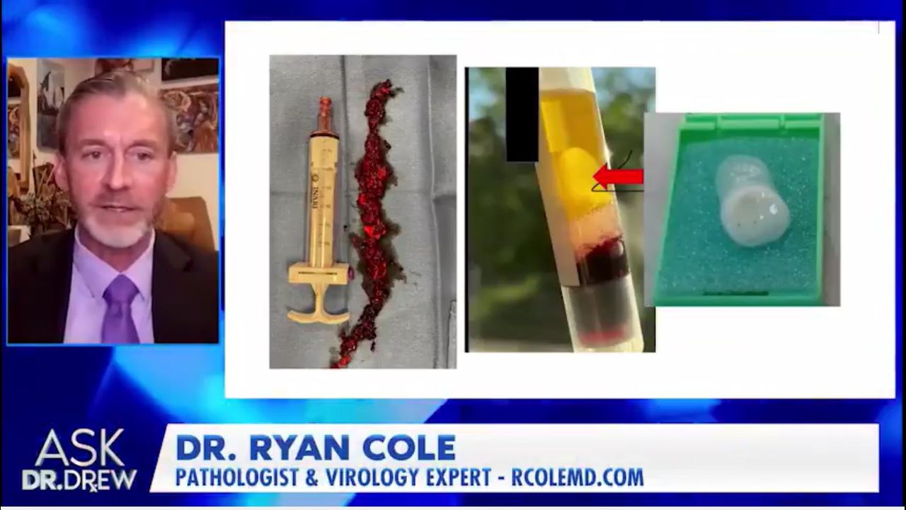 Pathologist, Dr. Ryan Cole, shows Dr. Drew the strange, foot-long clots he's been finding in mRNA "vaccinated" patients—both alive and deceased—and how they can be broken down and cleared from the body using a natural enzyme called 'Nattokinase'. (this is available over the counter, and also thru Dr McCullough's Wellness Group website.