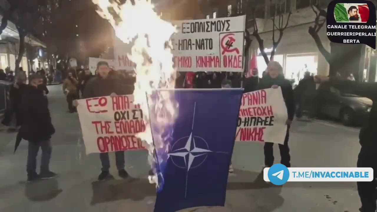 Telegram Channel INVACCINABLE. | WELL DONE, MY ORTHODOX CHRISTIAN BROTHERS! SO SHOULD DO THE MY PEOPLE, THE ROMANIANS. NATO AND EU NEVER BROUGHT ANYTHING GOOD TO ANYONE, ONLY BLOOD AND TOIL. | Massive anti NATO protests began in Greece. The Thesalonician protesters are burning a NATO flag against its military actions in the whole world.