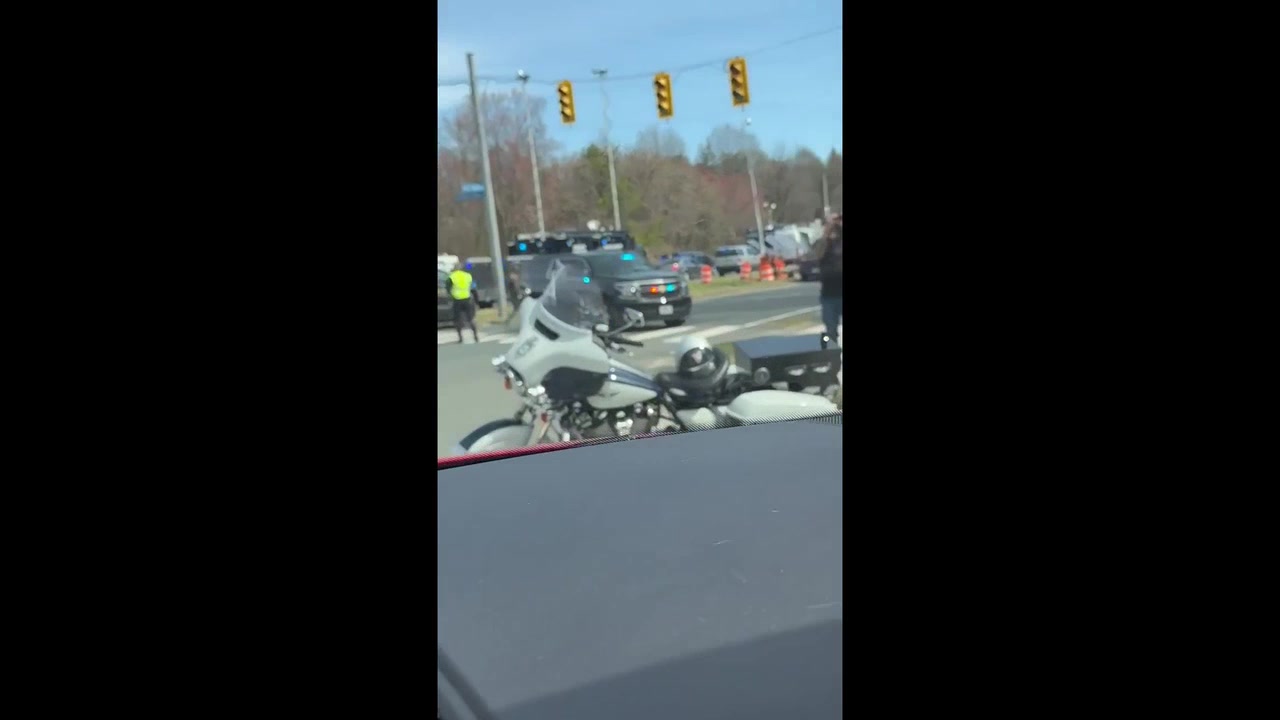 Roads shut down, SWAT cars parked up outside Langley, Virginia building.