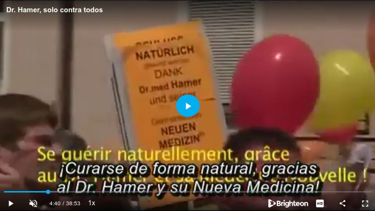 "Dr. Hamer, solo contra todos". Coproducción belga-canadiense realizado por Jean Jacques Crèvecoeur y producido por Jacquanou Sem Productions Inc. (2008). VOSE. Traducido y subtitulado al castellano por Pilar Perez (2021). Duración: 38 minutos. Documental que nos resume la vida y obra del Dr. Hamer y sus duros años donde estuvo preso en la cárcel más grande y de máxima seguridad francesa. Aunque estuvo solo contra la comunidad científica, el pueblo siempre estuvo con él. Gracias Dr. Ryke Geerd Hamer por todo. Salud y ¡VIVA LA MEDICINA SAGRADA!