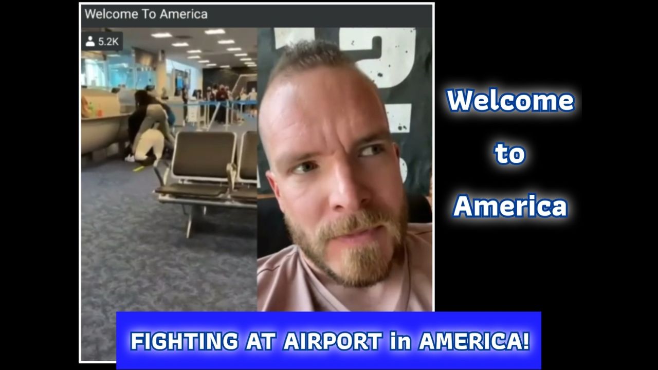Welcome to America! Fighting at USA Airport! See what defunding the po,ice is creating.