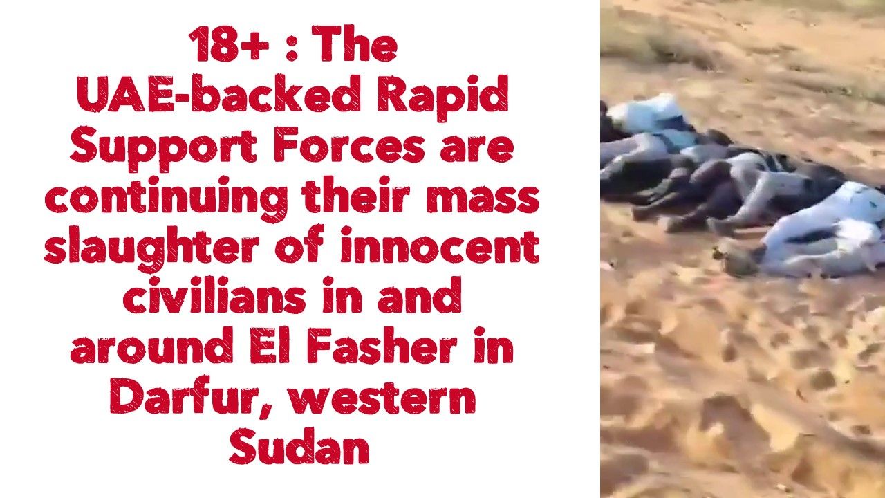 πΈπ©βπΈπ© β The UAE-backed Rapid Support Forces continue their mass slaughter of innocent civilians in and around El Fasher in Darfur, western Sudan