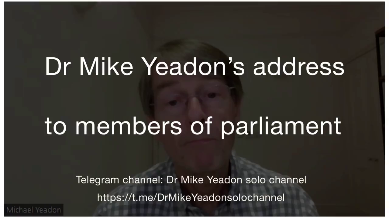 Dr. Mike Yeadon's censored address to the Members of UK Parliament (Dec 4, 2023) : https://rumble.com/v3zqppa-dr.-mike-yeadons-censored-address-to-the-members-of-uk-parliament-dec-4-202.html