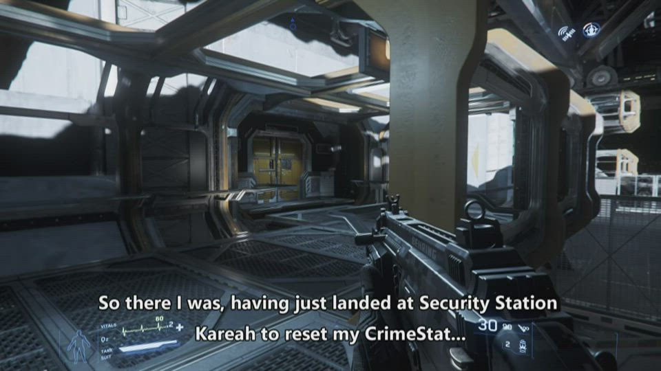 This mission was supposed to be a quick run to Security Station Kareah to hack the computer and reset my BS CrimeStat (a CrimeStat I got for not landing/getting out of my ship fast enough at Port Olisar. It gave me about 10 seconds, normally you have a minute or three minutes. Another bug).