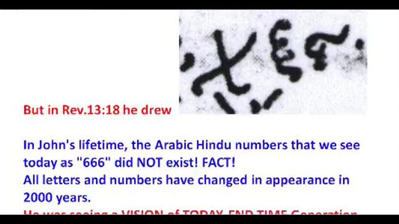 The three 6's that John saw and drew in Revelation 13 were not Hindu-Arabic numbers as we use in English math today. But rather, 3 major end time symbols revealing the multitudes of people who would follow the New World Order beast power. These 3 groups are responsible for all of the evil in the world. The Mark of the Beast is primarily spiritual, symbolized as being in the forehead, in our minds, and then also in our works as represented by our hands.