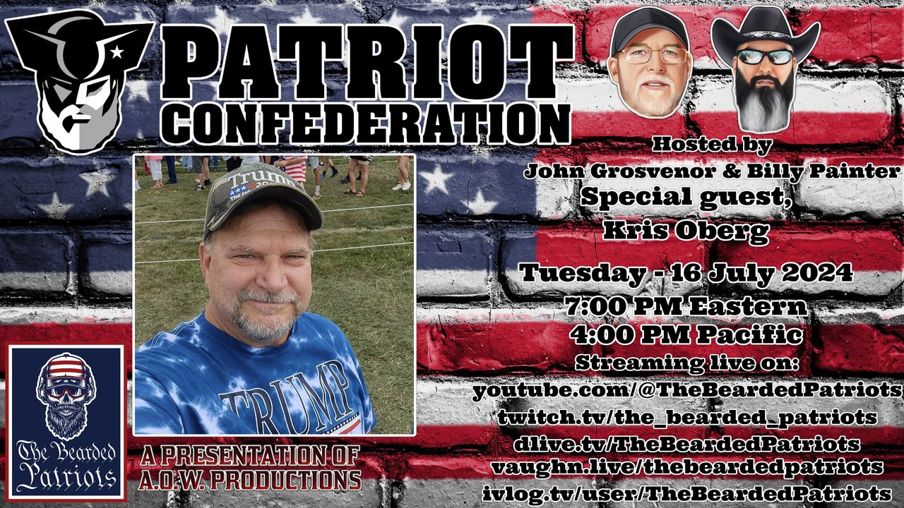 Every patriot has an obligation to question authority. Those who are honest are not concerned with your watchful vigilance and those with integrity are not concerned with your discernment. Every American is obligated to voice their concerns and stand up for their freedoms and liberties. Ladies and gentlemen, we are the men in the arena, we are the Patriot Confederation! Proudly hosted by John Grosvenor and "Bad Billy" Painter! This week Kris Oberg joins the show.
